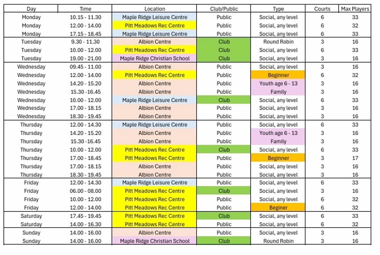 Non Club sessions at Pitt Meadows are drop in.
