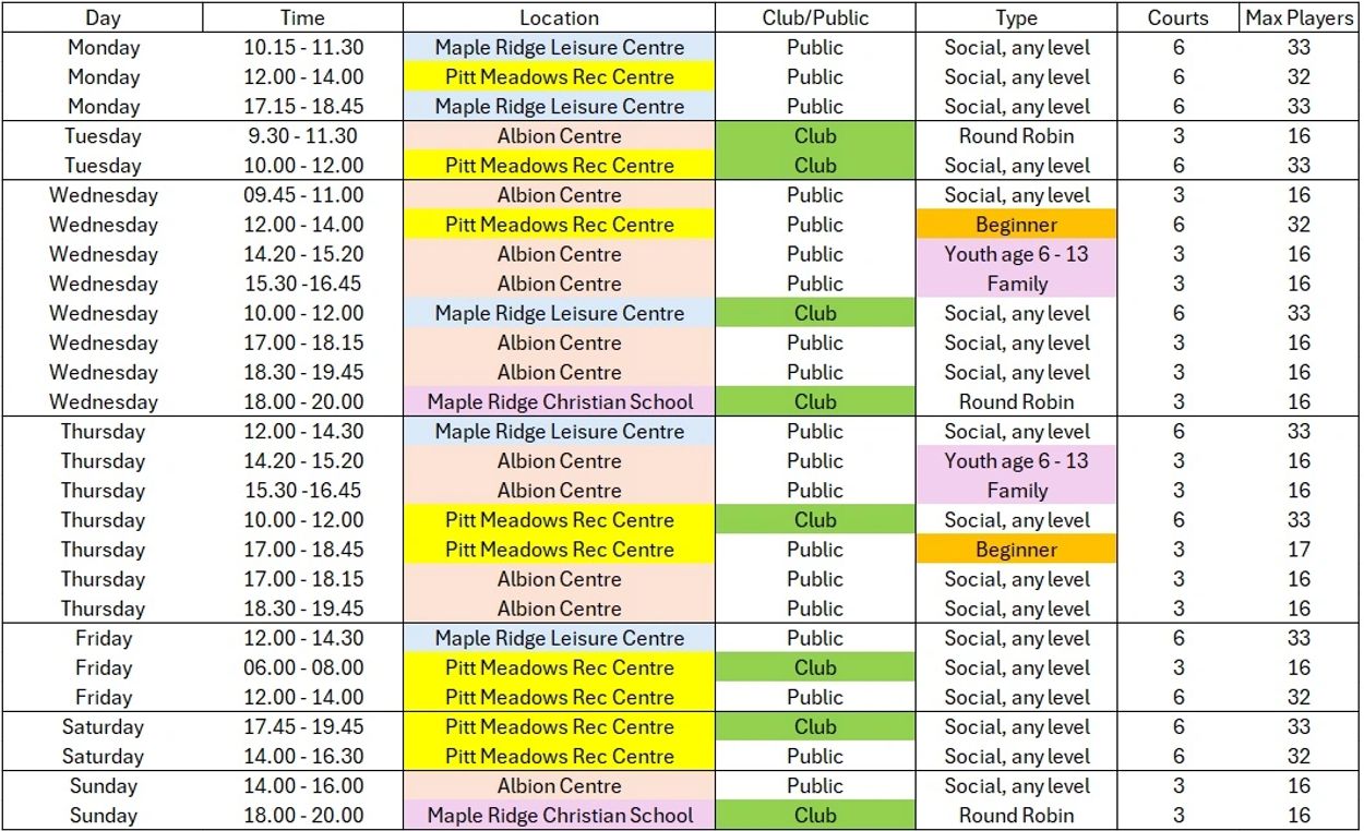 Pitt Meadows Athletic Park has 6 courts and is located at